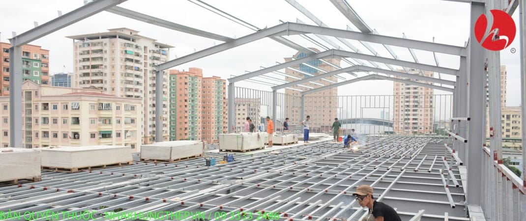 Nhà khung thép kết hợp tấm sàn , vách cemboard.